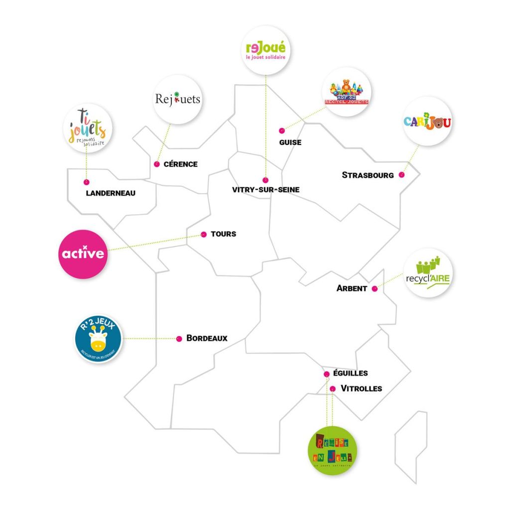 Le secteur du réemploi spécialisé en jouets, jeux en France compte, une dizaine d’acteurs répartis de manière relativement homogène sur l’ensemble du territoire national. Ces structures œuvrent également à l’inclusion sociale en France.